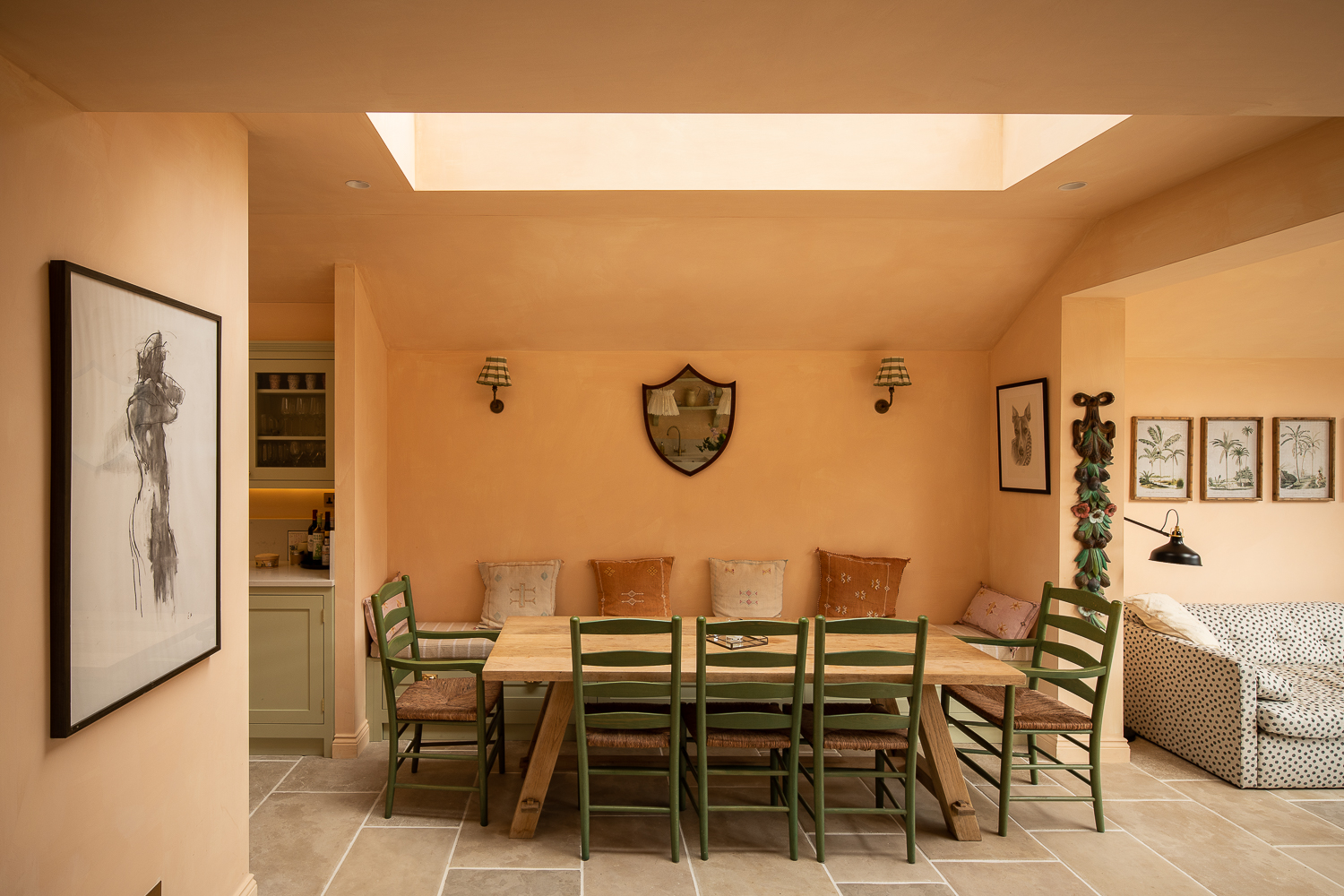 The new ground floor layout allows for a much more flexible and expansive use of the space. A compact utility and downstairs cloakroom were included, tucked into the centre of the plan without compromising the feeling of space in the new extension. The large sliding doors and multiple rooflights ensure the spaces are well lit year round and the clients opted for an exposed plaster finish to bring warmth and texture to the new spaces.
